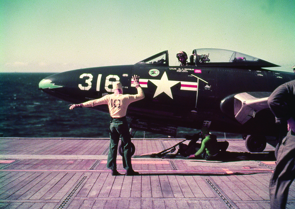 The Oriskany’s captain, Courtney Shands, was aware of the situation and ordered the ship to alter its course to line up with William’s landing vector. The crippled craft caught the number-three wire on the landing deck and lurched to an abrupt stop.